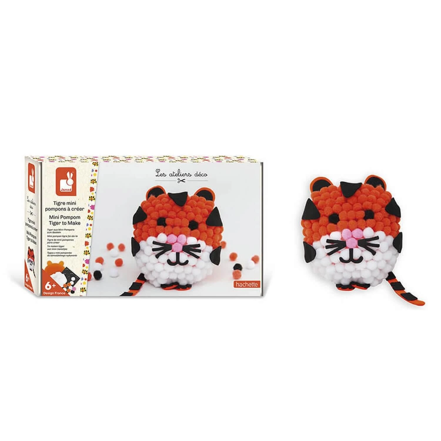 Découvrez ce kit créatif qui permet de réaliser 1 tigre mini pompons de la marque Janod.